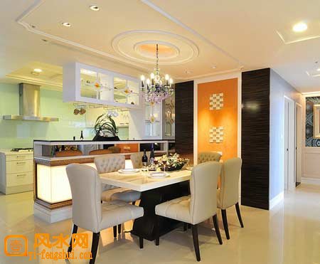 风水方位当中,西南方为飞星两黑管事,代表疾病。如果餐厅设置于房屋的西南方,则不利于家人的身体健康,尤其对女性不利。因此,考虑饭厅位置的时候,必须多加留意。所以餐厅的位置最好靠厨房而不是靠近卫生间。