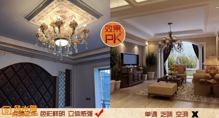 灯应打向天花板,以利用反射的方式,将光散布到客厅的每个方位。特别是日光灯的光线与太阳光最接近.从天花板反射出来,能增强客厅的阳气。 要想让客厅光线充足,客厅天花板不宜采用深色,应选用浅淡的颜色。这就如同在自然环境中天在高处为蓝色、白色,地在低处为黑色、褐色,在家中也如此布置符合自然之道。