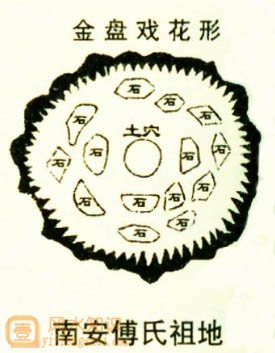 金盘戏花形风水宝地,南安傅氏祖地一金盘献花形来龙甚远,地结平冈,周环皆石盘。盘中小石旋转,穴安中央,以小石为坐为朝为龙虎,乃石巧穴。